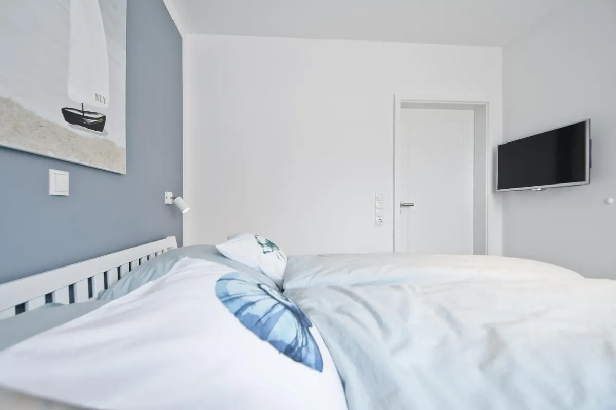 Ihre Ferienwohnung bietet drei Schlafzimmer. In den Schlafzimmern finden Sie Doppelbetten (1 x 180/200cm, 1 x 160/200cm; 1 x 150/190cm) und je einen Kleiderschrank. Die Fenster können verdunkelt werden. In zwei Schlafzimmern sind Flachbildfernseher installiert.