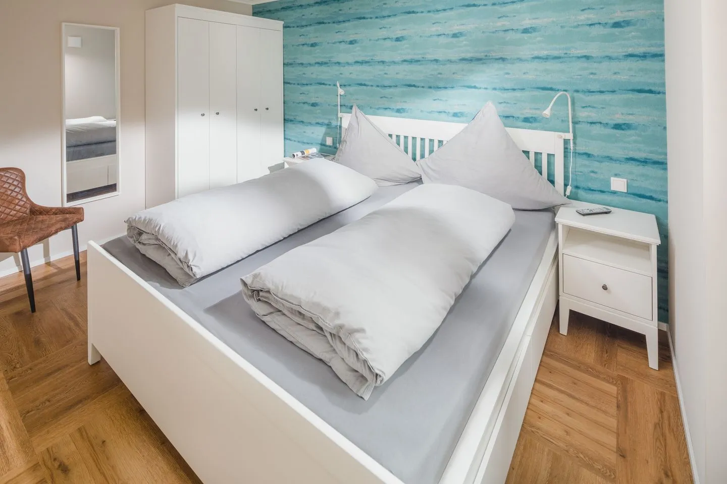 Ihre Ferienwohnung verfügt über zwei separate Schlafzimmer, beide ausgestattet mit einem gemütlichem Doppelbett (180x200 cm) und Flachbildfernseher.